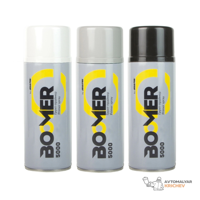 Автомобильный грунт-праймер в аэрозоле BOOMER 1К 400 мл - однокомпонентный акриловый грунт с качественными наполняющими свойствами. Рекомендуется для нанесения на места прошлифовки. Обладает быстрым временем сушки, легко шлифуется. Идеально подходит для точечного, мелкого и среднего ремонта. Возможно нанесение «мокрый по мокрому».