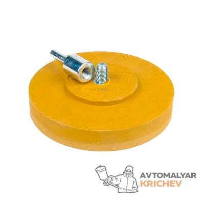 Резиновый диск с адаптером (ириска) служит для быстрого удаления наклеек, декоративных и клеящих лент, полосок и остатков клея с металла, стекла, стеклопластика, дерева и окрашенных поверхностей без их повреждения. Быстро удаляет клеящие ленты, декоративные полоски и остатки клея и прочее. Не повреждает лакокрасочного покрытия.